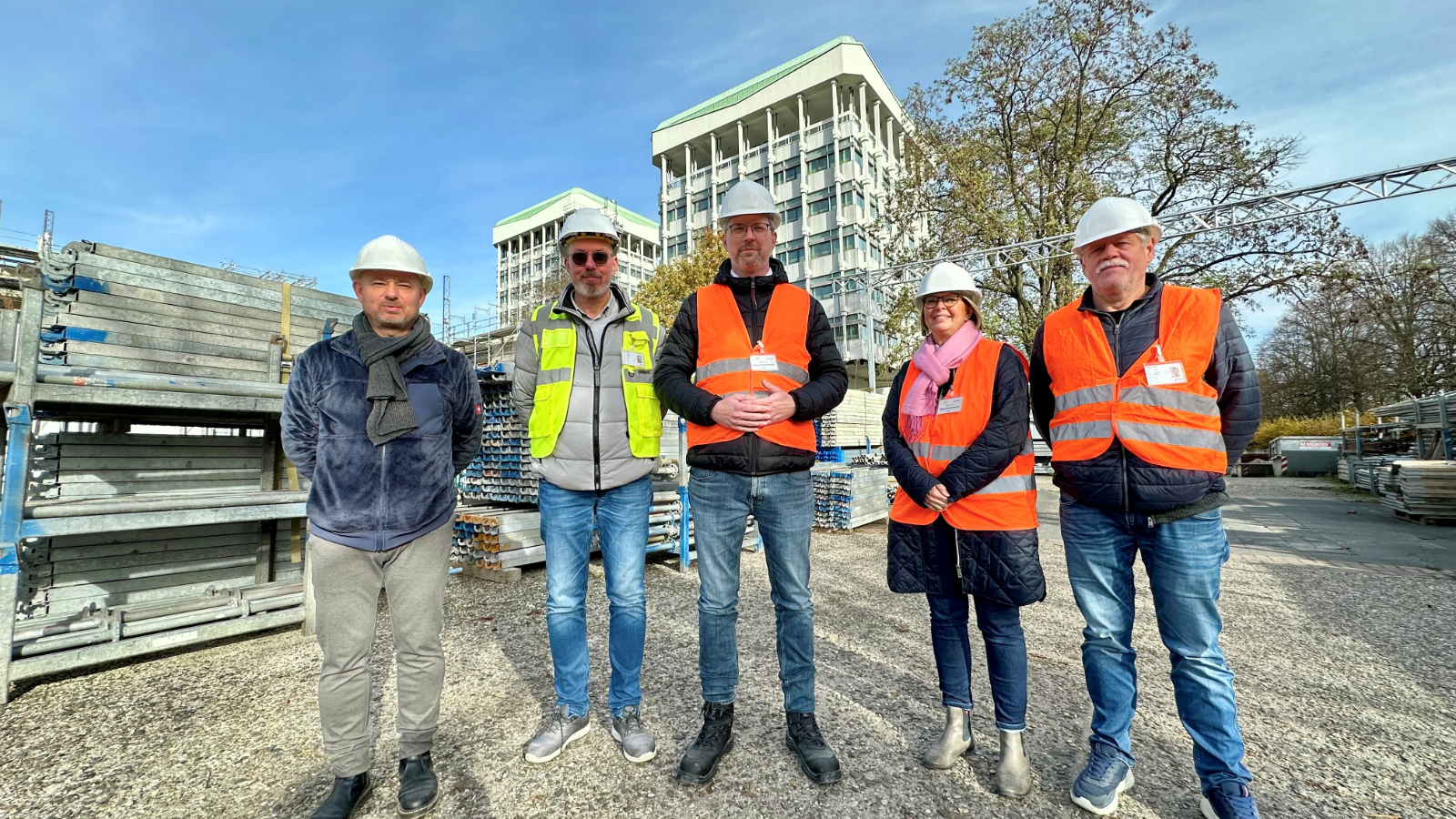 Der neue Bürgermeister besichtigt Baustelle und übernimmt die Verantwortung.