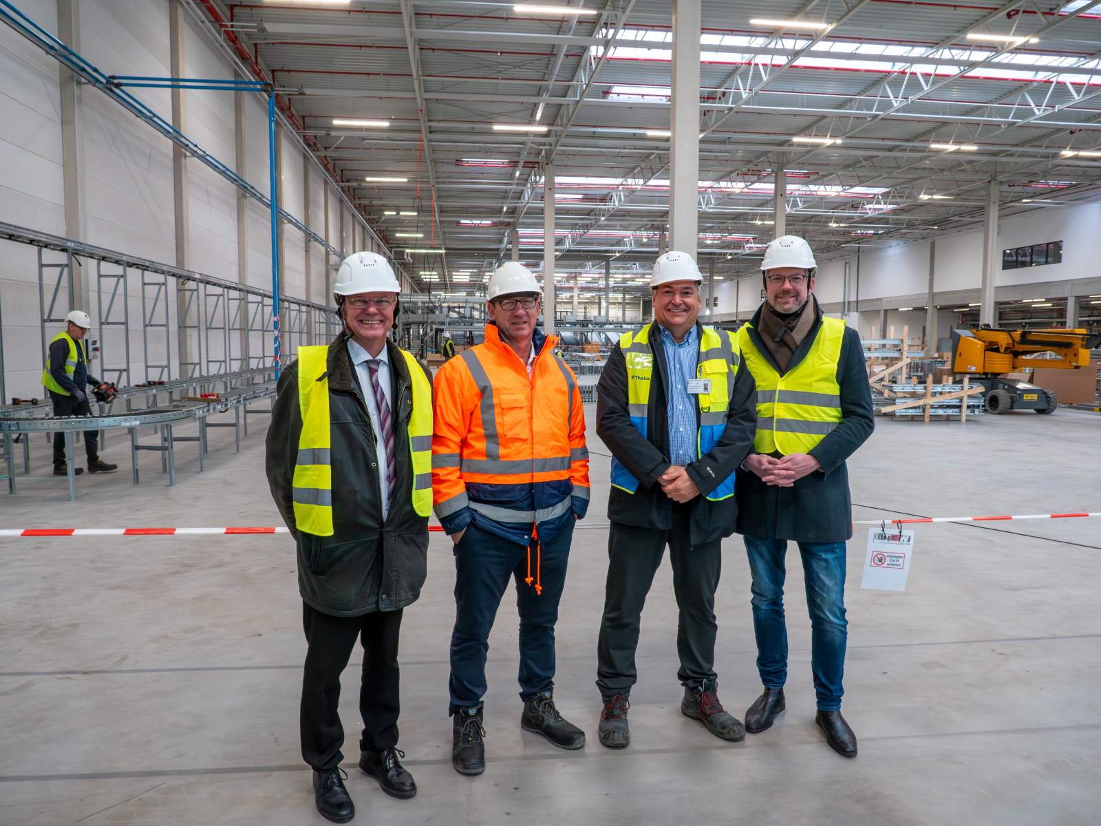 Der Termin am Montag war der erste größere Baustellenbesuch seit dem Richtfest im Juni. Thalia errichtet gemeinsam mit der ECE Work & Live auf dem früheren Bergbauareal eine 56.000 Quadratmeter große Gewerbe- und Produktionsimmobilie, die Anfang 2026 in Betrieb gehen soll. Das Unternehmen plant, den Standort in mehreren Stufen auszubauen – langfristig sollen dort bis zu 1.000 Arbeitsplätze für qualifizierte Fachkräfte entstehen, ergänzt um Ausbildungsplätze und Angebote für dual Studierende.